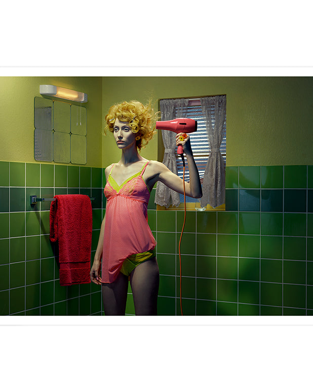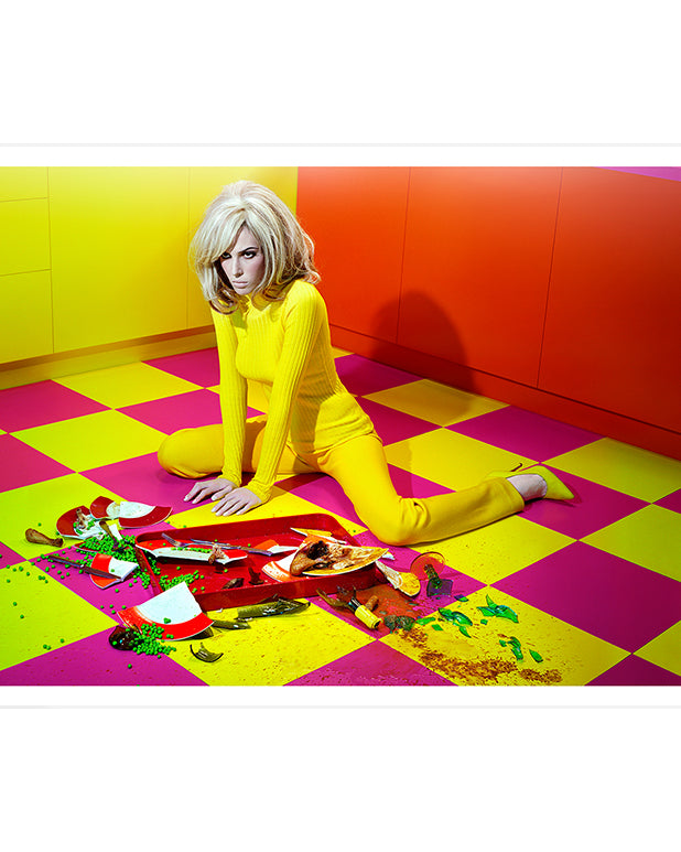 Miles Aldridge rose to prominence in the mid-nineties with his arresting, highly stylised photographs with references to film noir, art history and pop culture. An acclaimed colourist, he renders elaborate mise-en-scènes in a palette of vibrant acidic hues. These glamorous, frequently eroticised images probe society’s idealised notions of domestic bliss where sinister undercurrents swirl beneath a flawless surface. Aldridge has worked prolifically for more than twenty-five years, and today he remains one of the few photographers still shooting predominately on film. His creative output encompasses large-scale c-type prints, Polaroids, screenprints, photogravures and drawings.